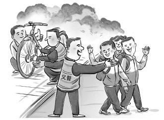 前不久,義警隊隊員在校園周邊巡邏時發(fā)現(xiàn)一位學生騎自行車時不慎摔倒,正逢暴雨,考慮到學生的安全,義警隊員第一時間上前幫助該學生修理自行車并將其安全送回家才放心離開。