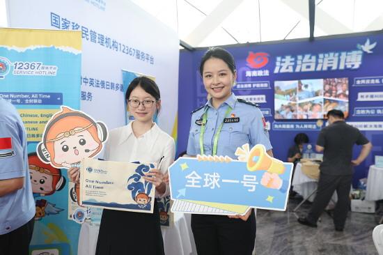 “12367在國外可以撥打嗎?”“通過免簽政策來海南可以前往中國其他省份嗎?”……4月15日上午,第六屆中國國際消費品博覽會(以下簡稱消博會)法治服務專區(qū)人頭攢動,一位外國參展人員妮可好奇地咨詢,駐點民警楊嫣嫣耐心地一一解答。