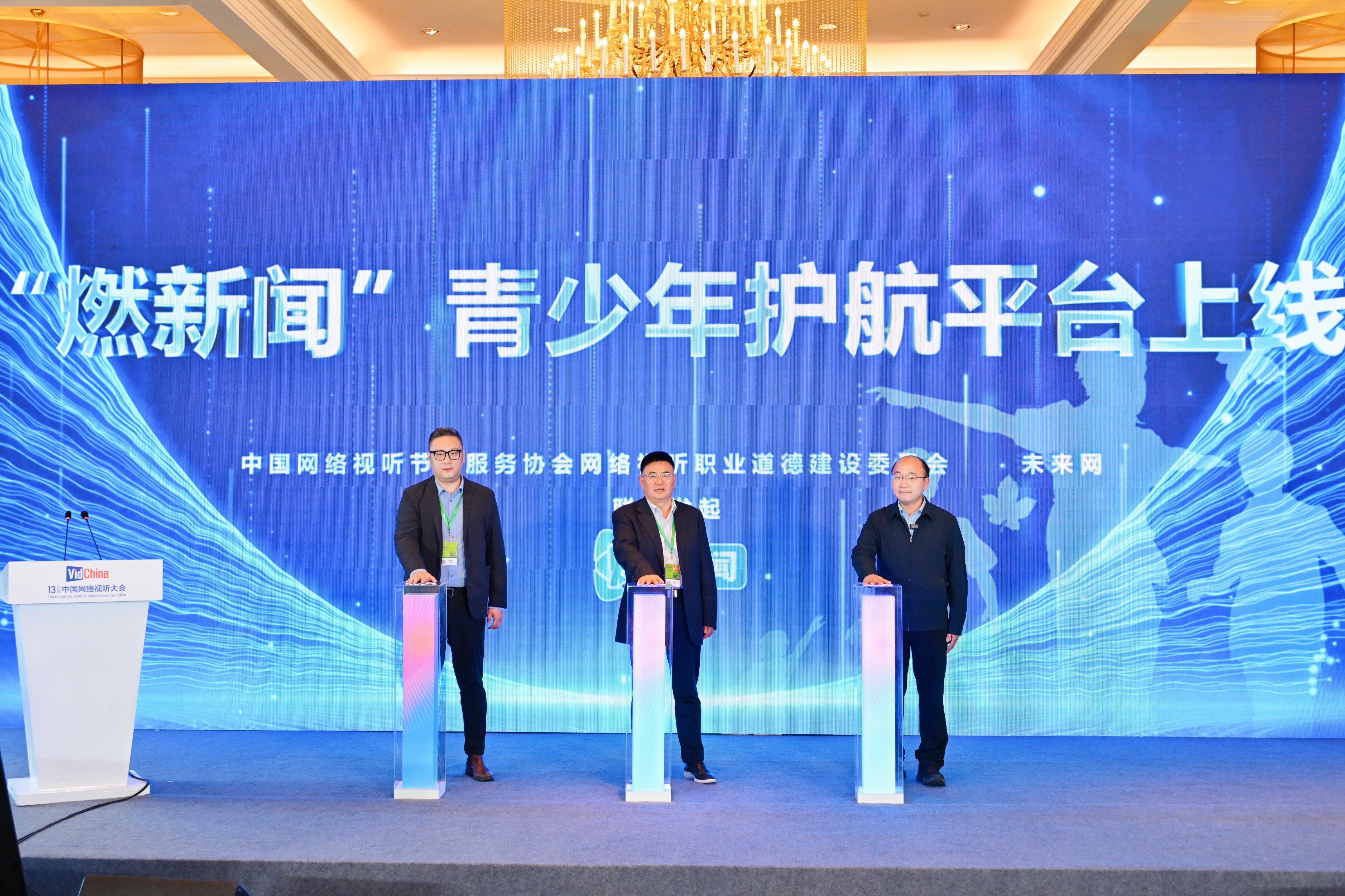 圖為4月14日,在第十三屆中國(guó)網(wǎng)絡(luò)視聽大會(huì)“網(wǎng)絡(luò)視聽公益和社會(huì)責(zé)任論壇”上,“燃新聞”青少年護(hù)航平臺(tái)正式上線