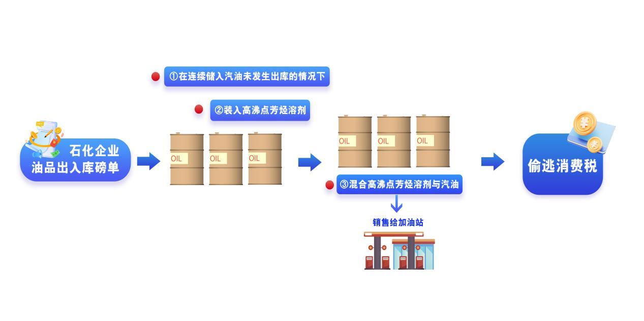 至此,宏堅石化的逃稅手法“一覽無余”:該企業(yè)作為經(jīng)銷企業(yè),從上游采購敏感化工品,在無生產(chǎn)資質(zhì)的情況下,直接將這些原料注入儲罐進行物理混合,產(chǎn)出所謂的“汽油”進行銷售,規(guī)避其作為油品調(diào)和者應(yīng)承擔的消費稅納稅義務(wù),達到偷逃稅款的目的。