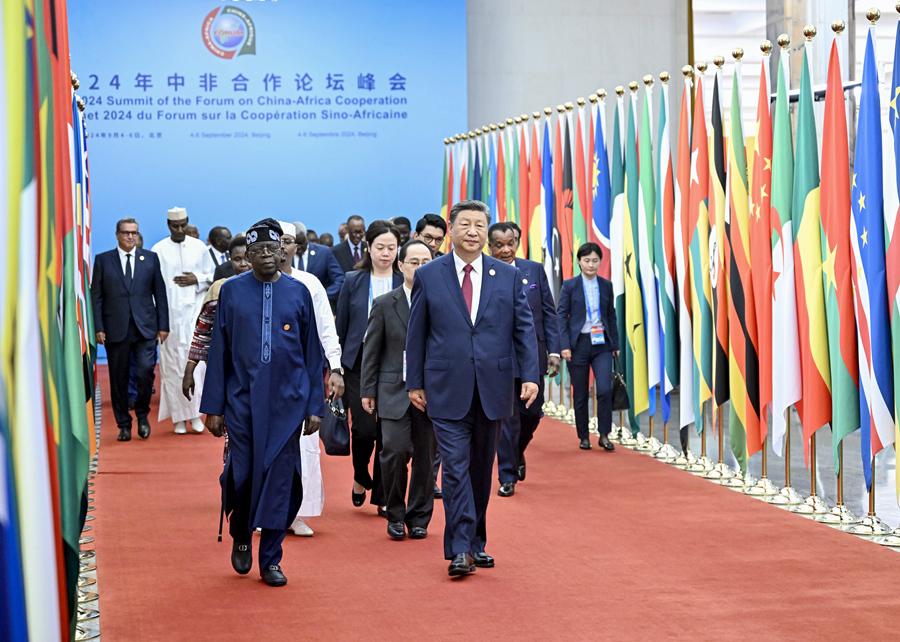 新華社北京9月5日電(記者楊依軍、孫奕)9月5日上午,國家主席習近平在北京人民大會堂出席中非合作論壇北京峰會開幕式并發(fā)表主旨講話。習近平宣布,中國同所有非洲建交國的雙邊關系提升到戰(zhàn)略關系層面,中非關系整體定位提升至新時代全天候中非命運共同體,將實施中非攜手推進現(xiàn)代化十大伙伴行動。