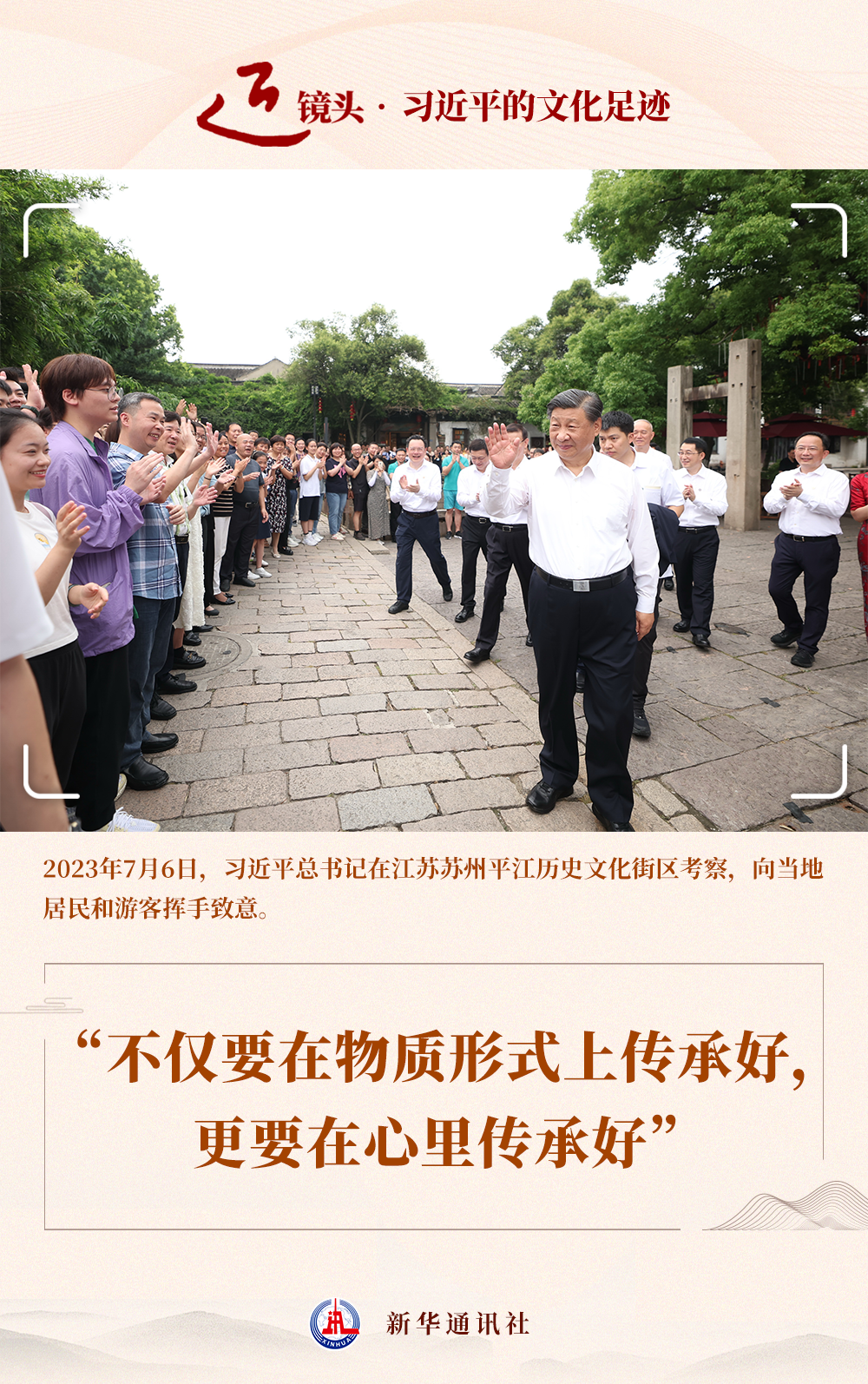 這次考察中,總書(shū)記深情囑托:“平江歷史文化街區(qū)是傳承弘揚(yáng)中華優(yōu)秀傳統(tǒng)文化、加強(qiáng)社會(huì)主義精神文明建設(shè)的寶貴財(cái)富,要保護(hù)好、挖掘好、運(yùn)用好,不僅要在物質(zhì)形式上傳承好,更要在心里傳承好?!?/p>