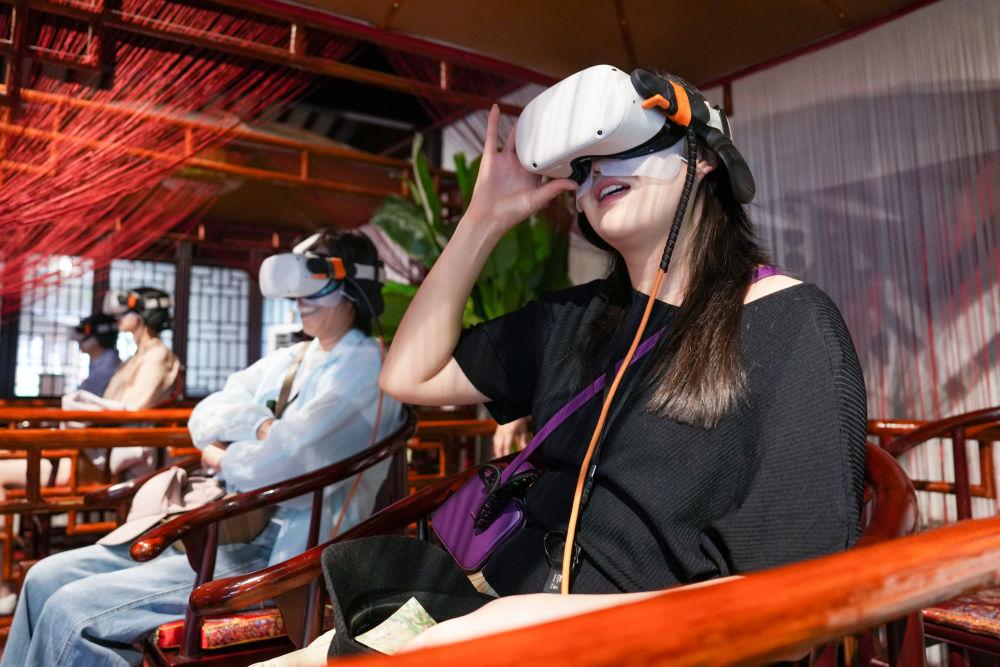 2025年5月18日,游客在江蘇蘇州拙政園體驗(yàn)VR漫游。近年來(lái),蘇州不斷推進(jìn)“數(shù)字園林”建設(shè),在園林整體數(shù)字建模、園林要素?cái)?shù)據(jù)庫(kù)建設(shè)等方面開(kāi)展探索,利用數(shù)字技術(shù)創(chuàng)造“數(shù)字云游”VR場(chǎng)景,打造“云游拙政園”“獅林園宇宙”“留園虛擬元宇宙”等項(xiàng)目,營(yíng)造真實(shí)可感的虛擬空間,讓觀(guān)眾沉浸式感受蘇州園林的獨(dú)特魅力。