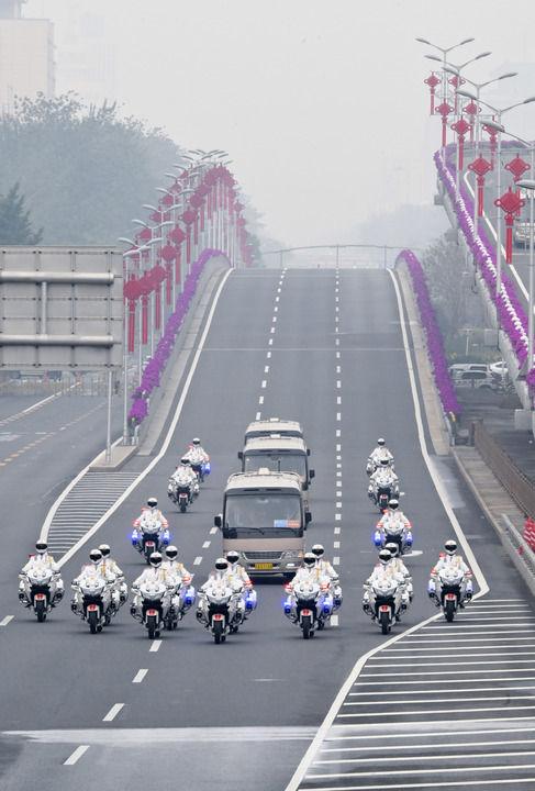 ??2020年9月8日上午,全國(guó)抗擊新冠肺炎疫情表彰大會(huì)在北京人民大會(huì)堂隆重舉行。這是國(guó)家勛章和國(guó)家榮譽(yù)稱號(hào)獲得者集體乘坐禮賓車(chē)從住地出發(fā),由國(guó)賓護(hù)衛(wèi)隊(duì)護(hù)衛(wèi)前往人民大會(huì)堂。新華社記者 劉彬 攝