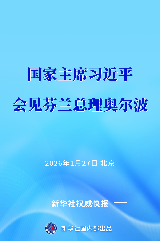 1月27日上午,國家主席習近平在北京會見來華進行正式訪問的芬蘭總理奧爾波。