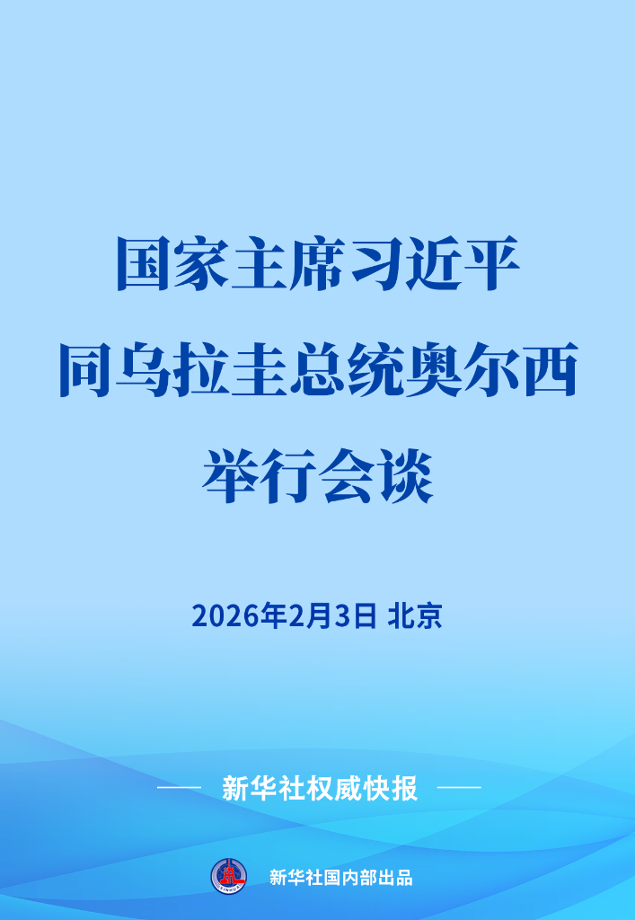 2月3日,國家主席習(xí)近平在北京同來華進行國事訪問的烏拉圭總統(tǒng)奧爾西舉行會談。