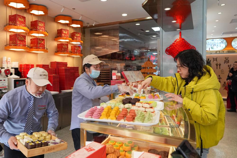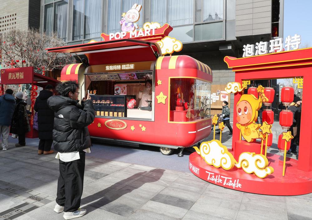 2026年2月7日,市民游客在上海市南京路步行街一家春節(jié)限定潮玩快閃店挑選商品。