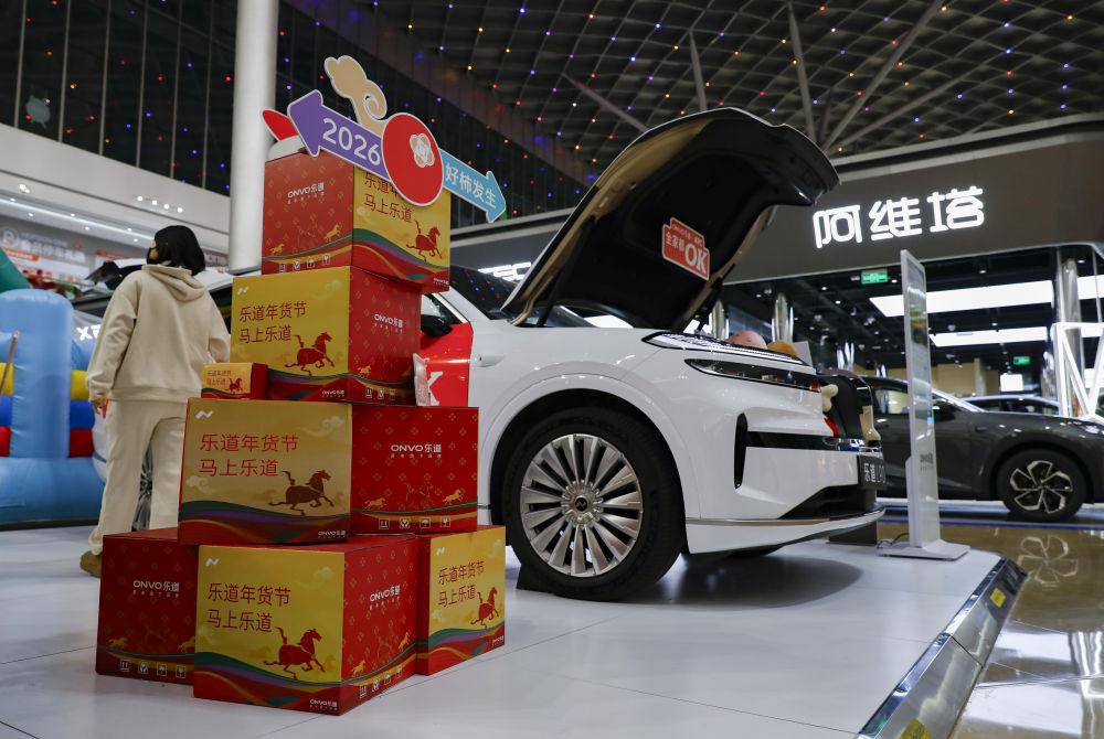 2026年2月8日,市民在北京合生匯商場了解新能源汽車。春節(jié)臨近,新能源車企紛紛推出優(yōu)惠政策,通過金融優(yōu)惠、贈(zèng)送禮品等方式吸引消費(fèi)者購買。此外,近日北京、上海、天津等多地發(fā)布2026年汽車以舊換新相關(guān)細(xì)則,報(bào)廢更新最高補(bǔ)貼2萬元,置換更新最高補(bǔ)貼1.5萬元。消費(fèi)者更新需求加快釋放,與產(chǎn)業(yè)轉(zhuǎn)型良性互動(dòng),推動(dòng)消費(fèi)市場擴(kuò)容“煥新”。