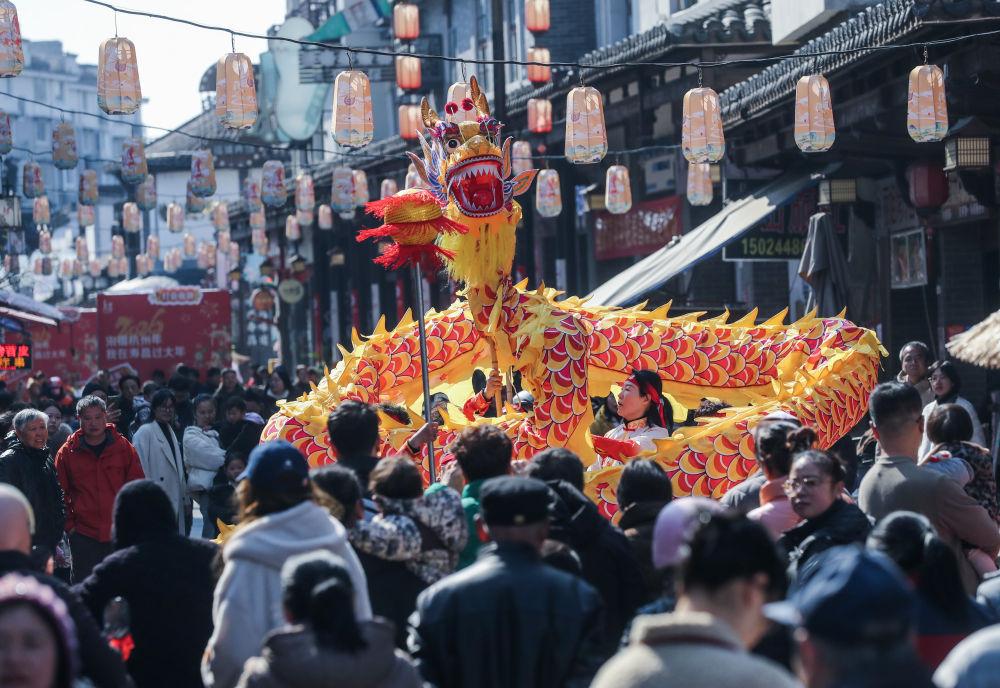 2026年2月8日,游客在浙江壽昌古鎮(zhèn)老街上觀看傳統(tǒng)舞龍表演。近期,浙江省建德市壽昌古鎮(zhèn)舉辦傳統(tǒng)民俗迎新春活動(dòng),民俗踩街、舞龍舞獅、馬年主題燈展等活動(dòng),吸引八方游客前來體驗(yàn)古鎮(zhèn)傳統(tǒng)年味,進(jìn)一步激活新春消費(fèi)市場,為當(dāng)?shù)匚穆媒?jīng)濟(jì)發(fā)展注入新動(dòng)能。