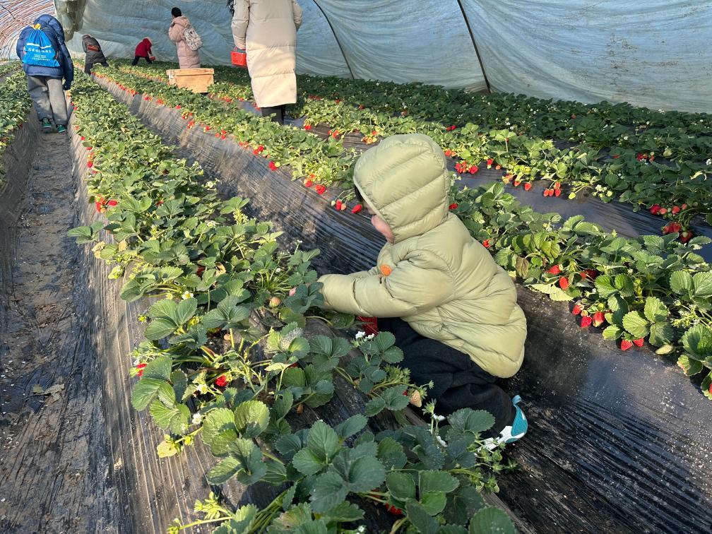 2026年1月22日,在河南洛陽孟津區(qū)送莊鎮(zhèn)十里香現(xiàn)代農(nóng)業(yè)觀光園,前來研學(xué)的孩子們體驗(yàn)采摘草莓的樂趣。(受訪者供圖)
