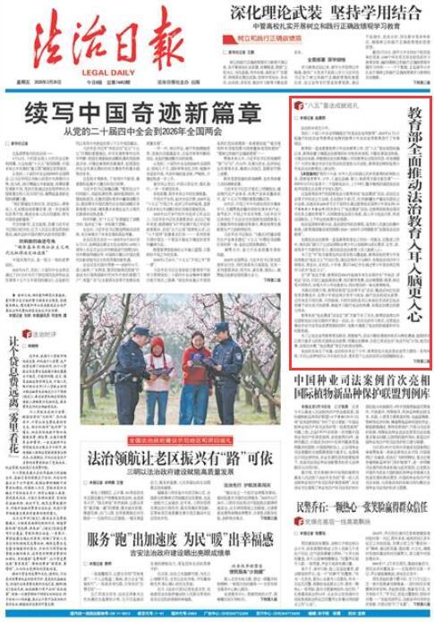——印發(fā)《全國(guó)教育系統(tǒng)開(kāi)展法治宣傳教育的第八個(gè)五年規(guī)劃(2021—2025年)》,對(duì)“十四五”時(shí)期教育系統(tǒng)法治宣傳教育工作進(jìn)行全面部署。