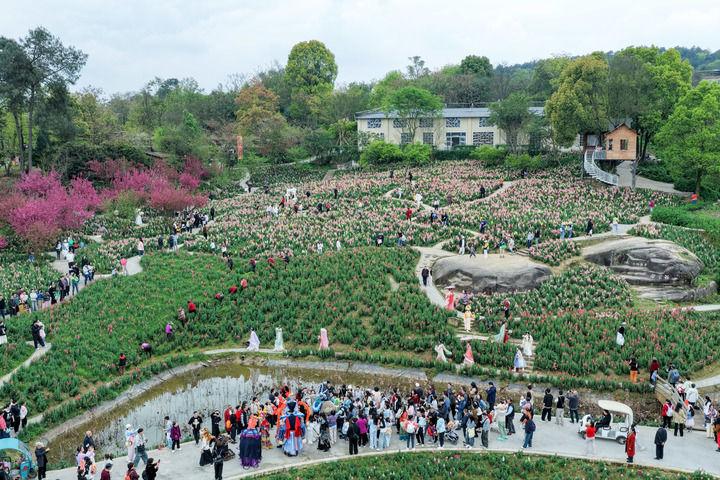 2026年3月22日,游客在重慶市巴南區(qū)二圣鎮(zhèn)集體村云林天鄉(xiāng)景區(qū)踏青游玩(無(wú)人機(jī)照片)。近年來,重慶市巴南區(qū)二圣鎮(zhèn)集體村依托云林天鄉(xiāng)景區(qū),發(fā)展都市休閑觀光農(nóng)業(yè),深入推進(jìn)農(nóng)文旅深度融合發(fā)展,通過打造油菜花、金魚草等不同品種的四季高山花海主題景區(qū),實(shí)現(xiàn)從過去苗木基地“賣苗木”到鄉(xiāng)村旅游“賣景觀”的轉(zhuǎn)變,帶動(dòng)村民增收致富。新華社記者 黃偉 攝