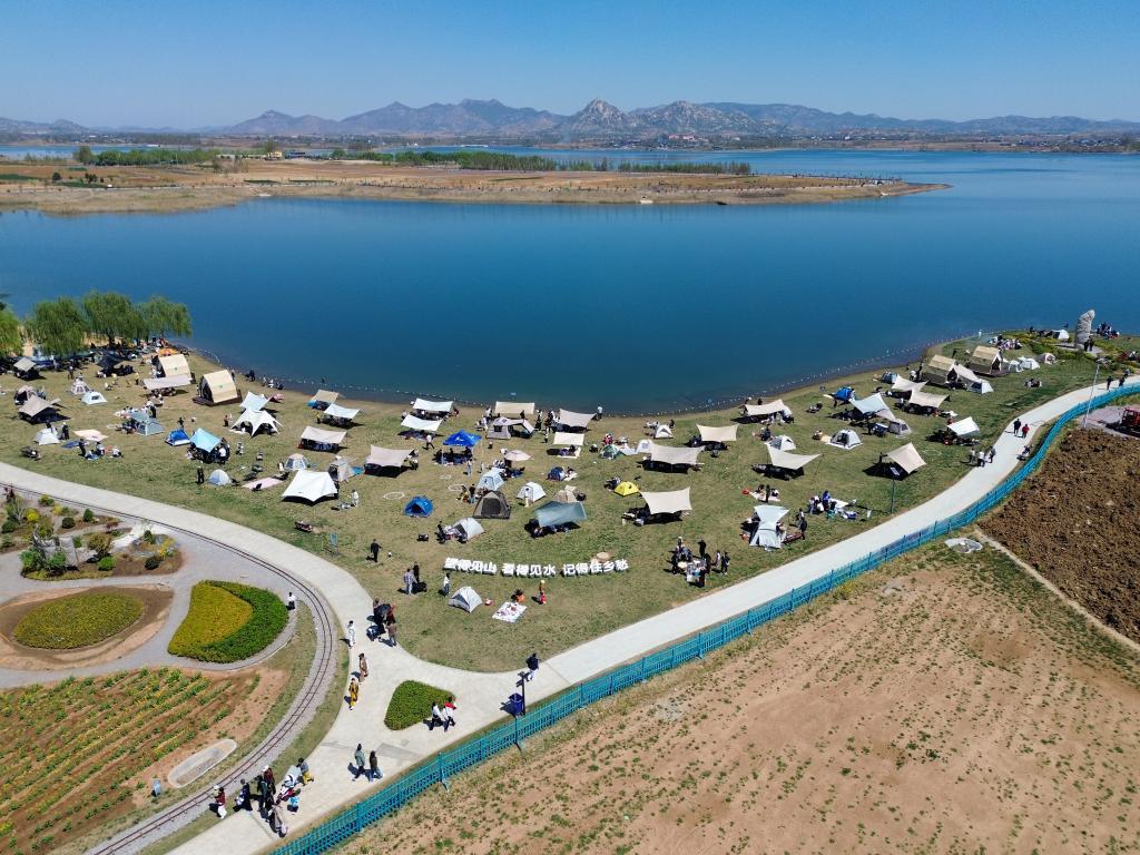 4月4日,游客在山東省滕州市龍陽(yáng)鎮(zhèn)“龍湖月色”省級(jí)鄉(xiāng)村振興齊魯樣板片區(qū)內(nèi)露營(yíng)休閑。新華社記者朱崢 攝