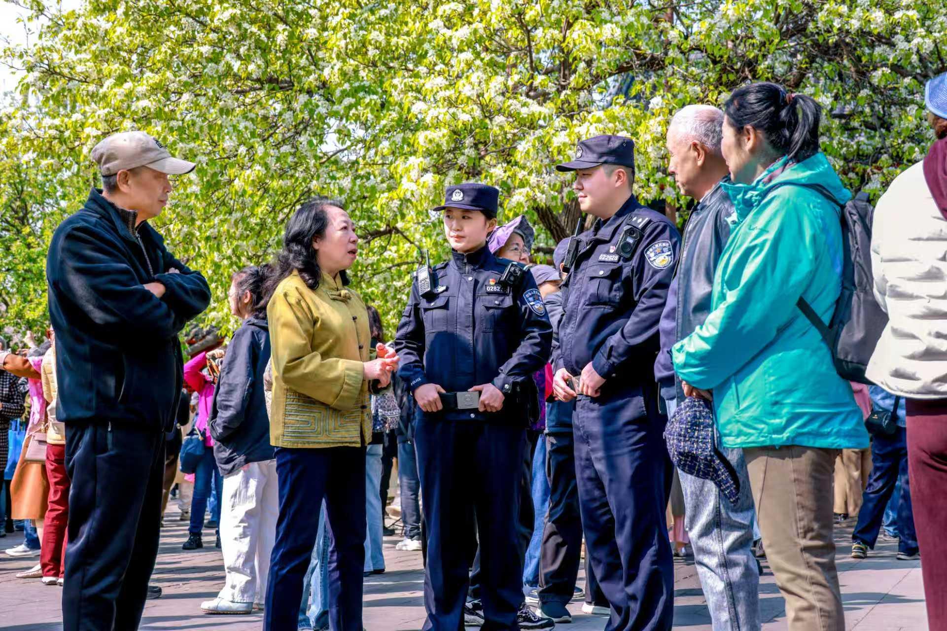 進(jìn)入春季賞花期,北京市東城區(qū)各大公園景點(diǎn)繁花盛放,吸引大批游客前來打卡。面對(duì)持續(xù)高位運(yùn)行的客流量,北京市公安局東城分局堅(jiān)持“遠(yuǎn)端疏導(dǎo)、近端分流”,優(yōu)化游覽線路,適時(shí)采取分段引導(dǎo)、循環(huán)通行等措施,確保游覽秩序平穩(wěn)有序。