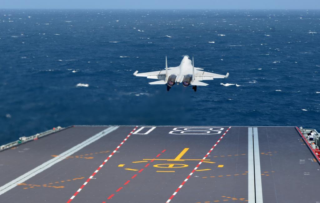 海軍福建艦開展入列后首次海上實兵訓練期間,殲-15DT艦載機彈射起飛(資料照片)。新華社發(fā)(高澤明 攝)