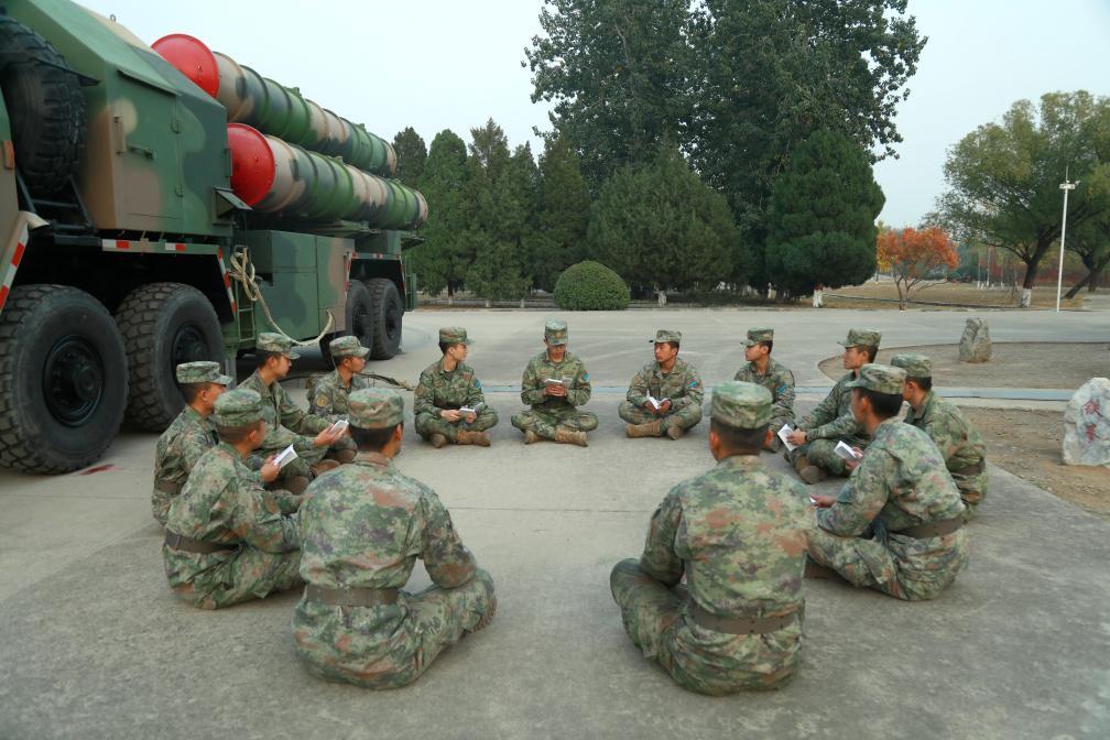中部戰(zhàn)區(qū)空軍“模范地空導彈營”開展“鳴鏑講堂”交流活動(2022年10月25日攝)。新華社發(fā)(趙勝之 攝)
