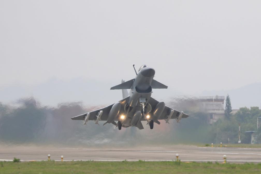 2023年4月8日,東部戰(zhàn)區(qū)圓滿完成環(huán)臺島戰(zhàn)備警巡和“聯(lián)合利劍”演習。這是殲擊機掛彈起飛。新華社發(fā)(王紫簫 攝)