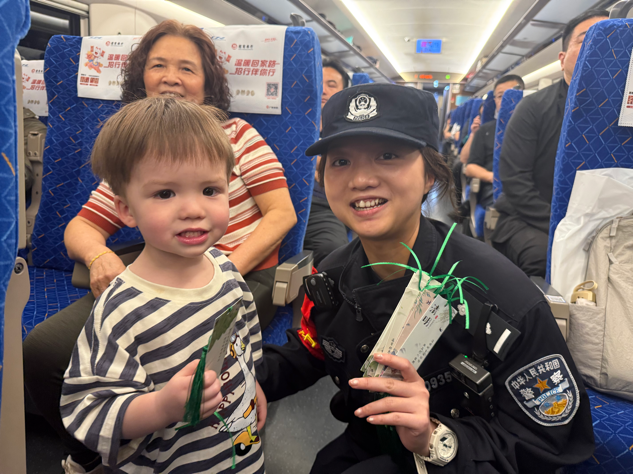 此外,女警們還將精心制作的祝福書簽送到旅客手中,書簽上印有節(jié)日安康寄語(yǔ)和簡(jiǎn)潔安全提示,讓旅途之中的旅客倍感暖心。“鵬乘楓警”女子乘警組把安全保障與人文關(guān)懷融入旅途點(diǎn)滴,為假期高鐵出行筑牢安全屏障,也用真摯服務(wù)為奔波的旅客送去溫暖。