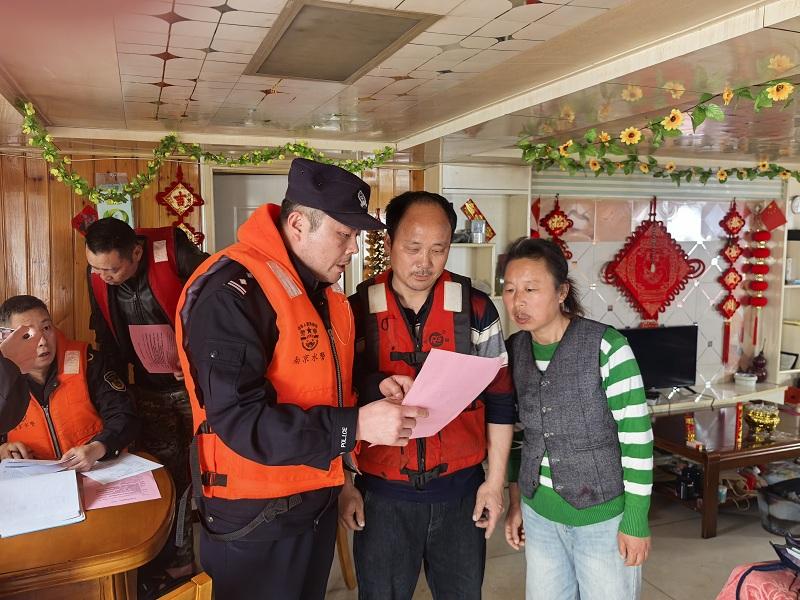 圖為水上公安局民警登船開展安全檢查、普及反詐知識。楊群 攝
