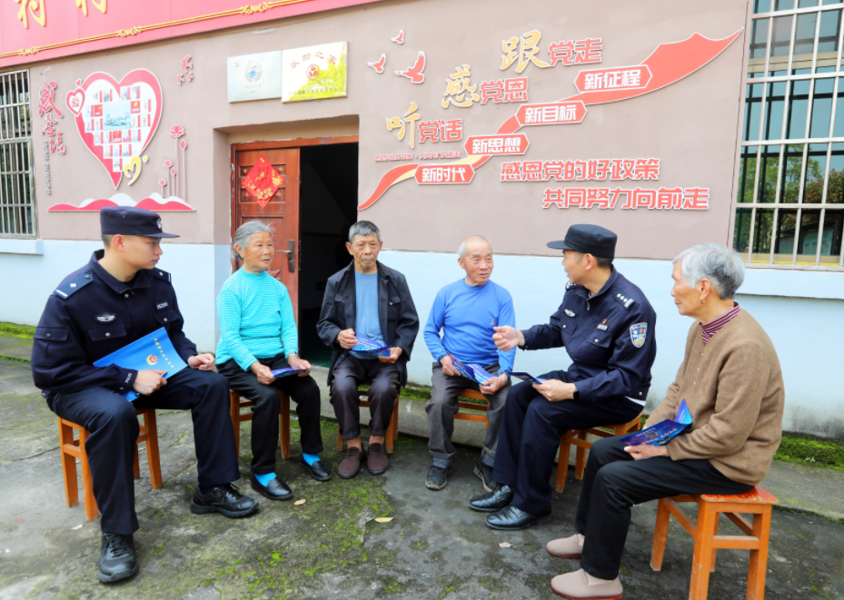 圖為4月9日,民警在分宜鎮(zhèn)收村村“頤養(yǎng)之家”向老年人宣傳反詐知識(shí)。