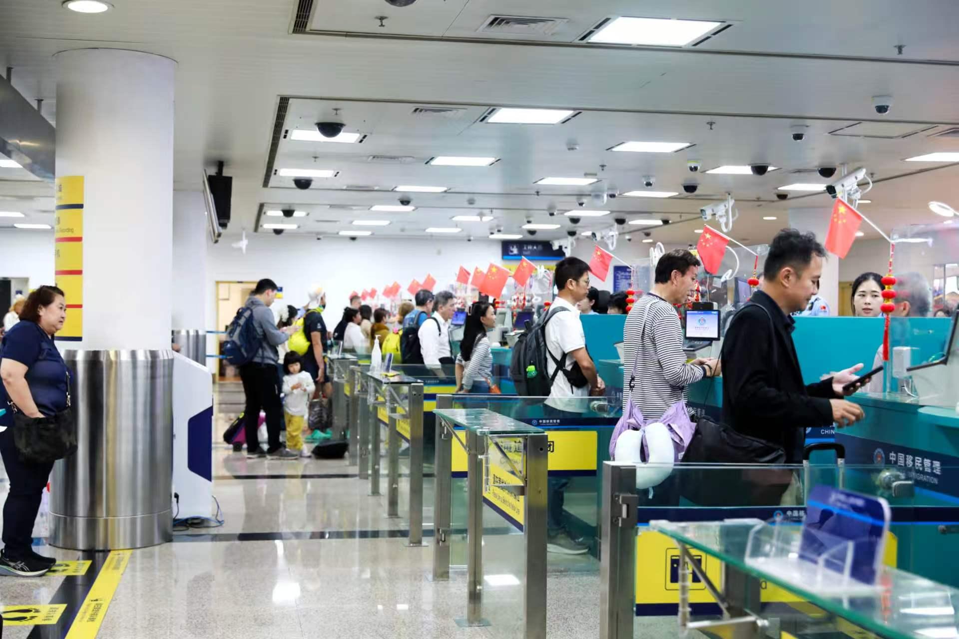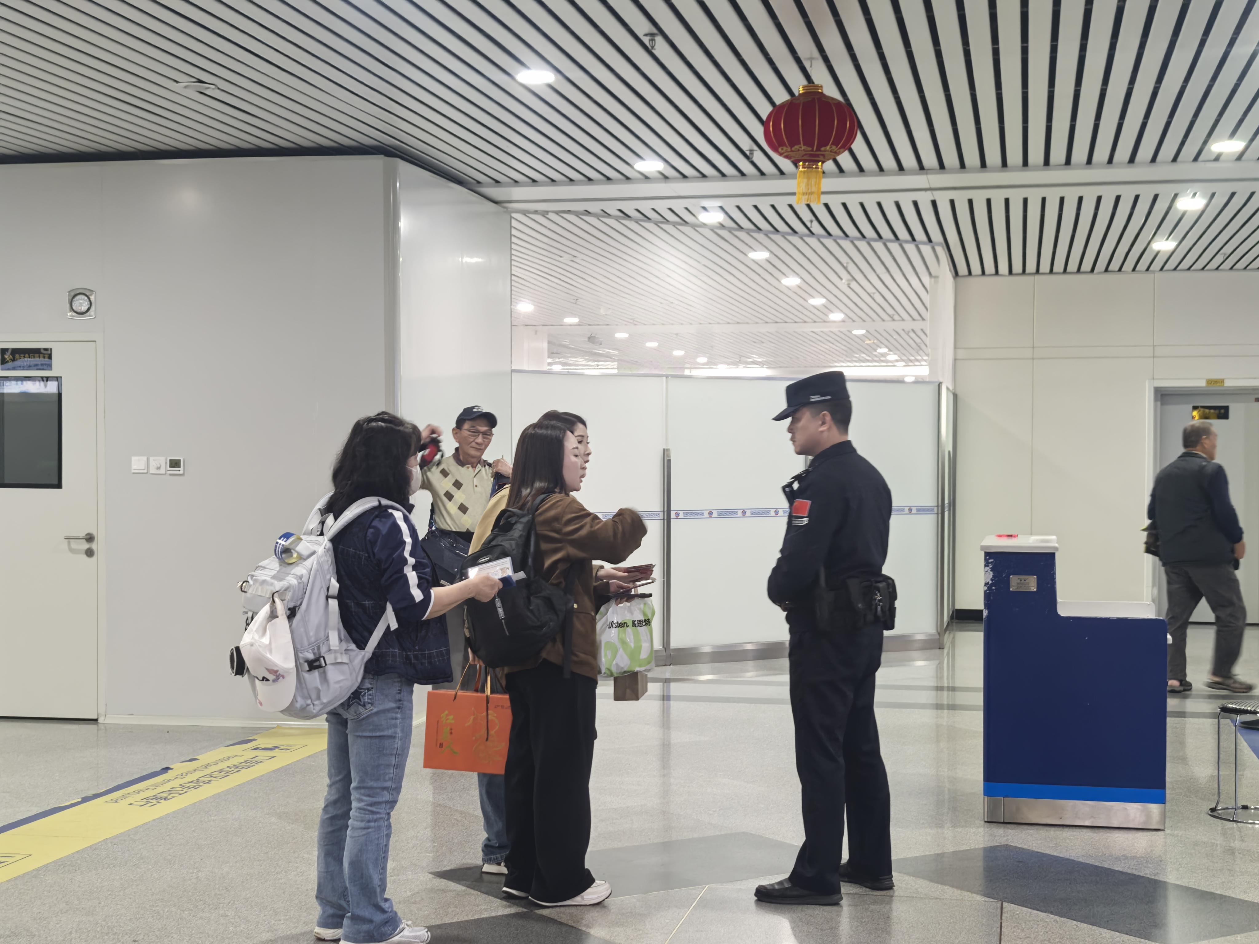 圖為高崎國際機場,高崎邊檢站移民管理警察正在進行旅客驗放 馬聞萱 攝
