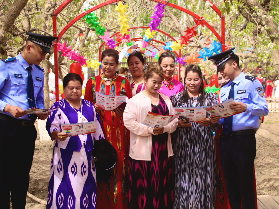 4月10日,新疆新和縣塔木托格拉克鄉(xiāng)梨花文化旅游節(jié)如期而至。梨花競相綻放,如云似雪,吸引了大批游客和周邊群眾前來賞花踏青。新和縣公安局塔木托格拉克鄉(xiāng)派出所的民輔警穿梭在梨園與人群中,開展流動的國家安全教育活動,讓法治春風(fēng)吹進游客心坎里。