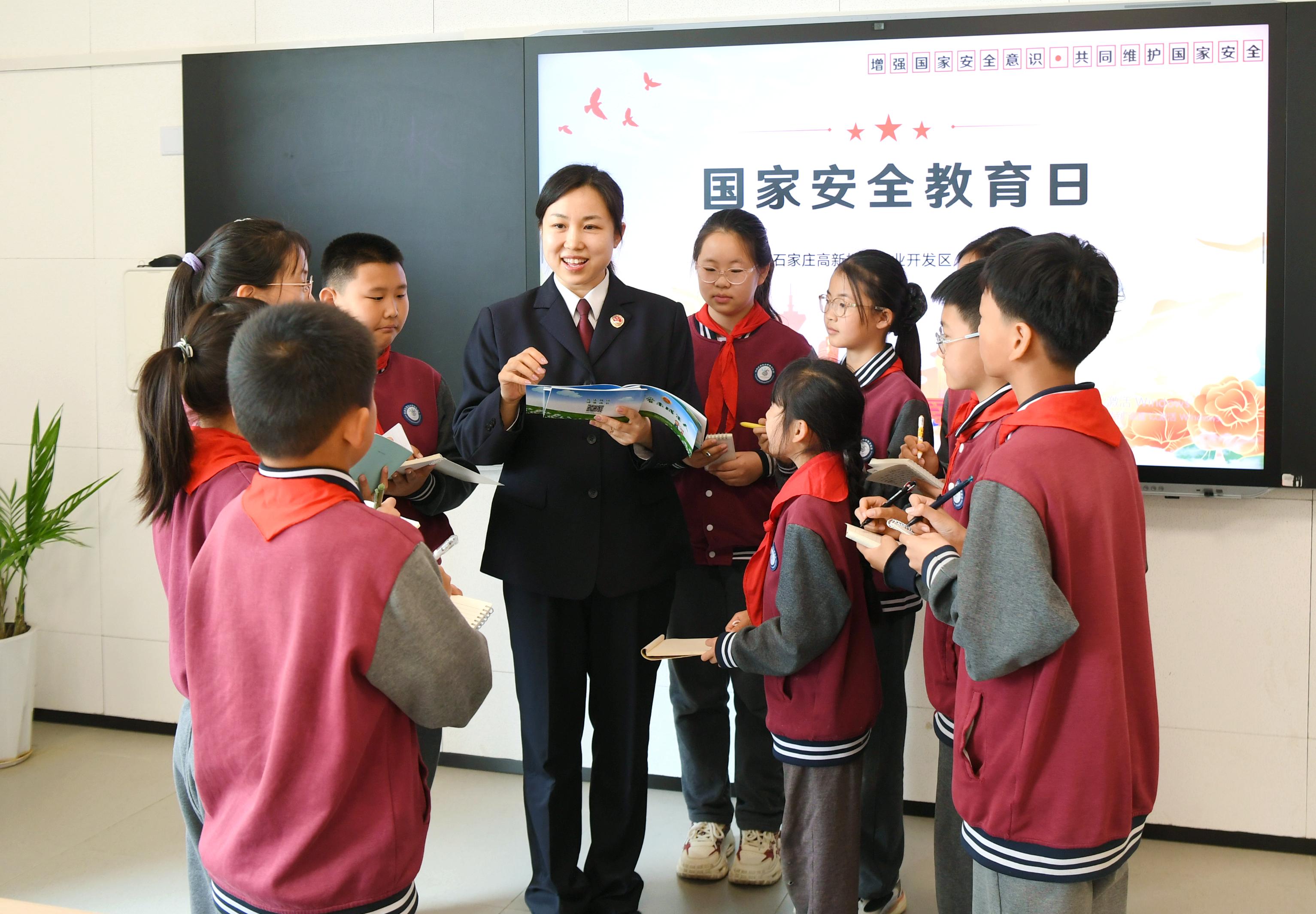 4月14日,河北省石家莊市高新區(qū)人民檢察院檢察官走進轄區(qū)學(xué)苑路小學(xué),開展“國家安全進校園”主題法治宣傳活動。檢察干警通過案例講解、互動問答等形式,教育引導(dǎo)學(xué)生從身邊做起,以實際行動守護國家安全。