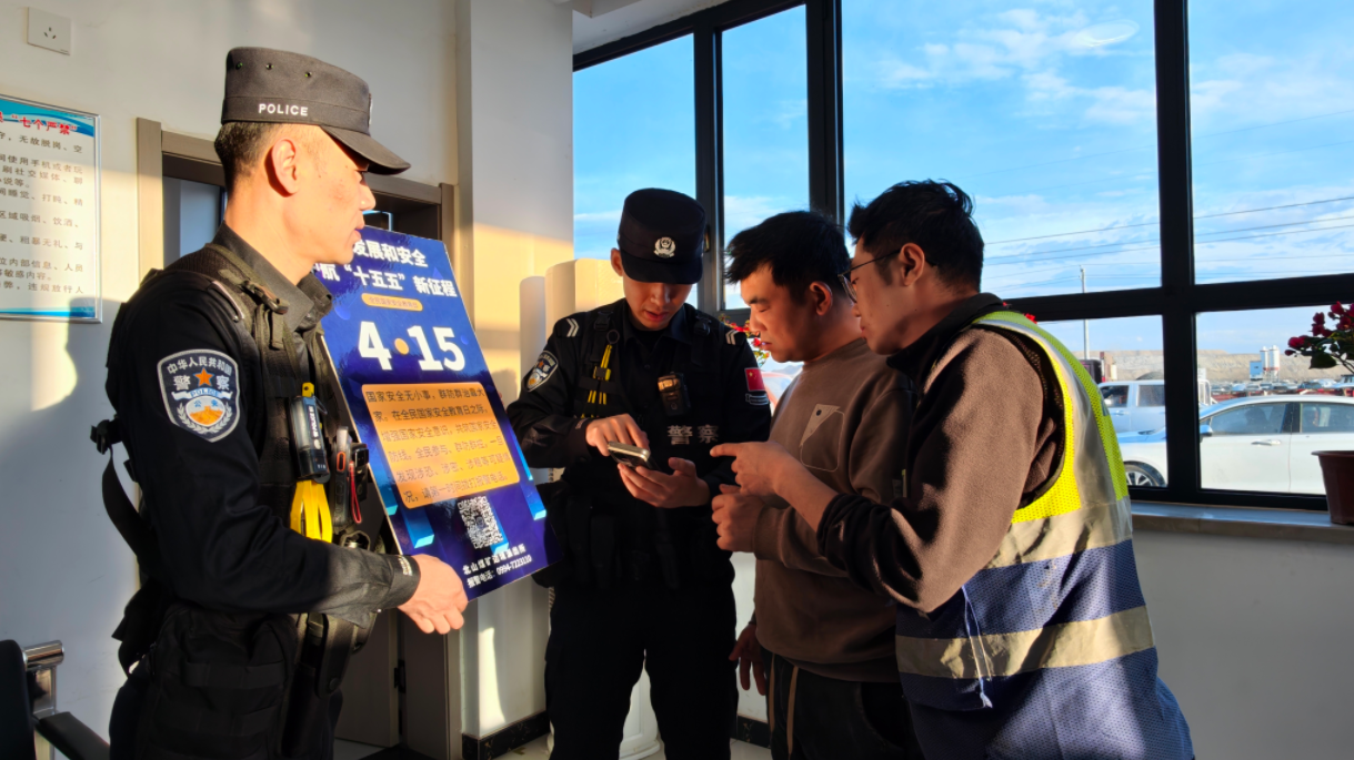 4月14日下午,新疆準(zhǔn)東經(jīng)濟(jì)技術(shù)開發(fā)區(qū)一家企業(yè)活動(dòng)室里人頭攢動(dòng),新疆出入境邊防檢查總站昌吉邊境管理支隊(duì)北山煤礦邊境派出所民警支起一塊醒目的宣傳板,通過發(fā)放宣傳單、播放宣傳片、以案釋法、現(xiàn)場互動(dòng)等形式向在場人員講解國家安全知識,為工人們帶來一堂干貨滿滿的國家安全普法小課堂。