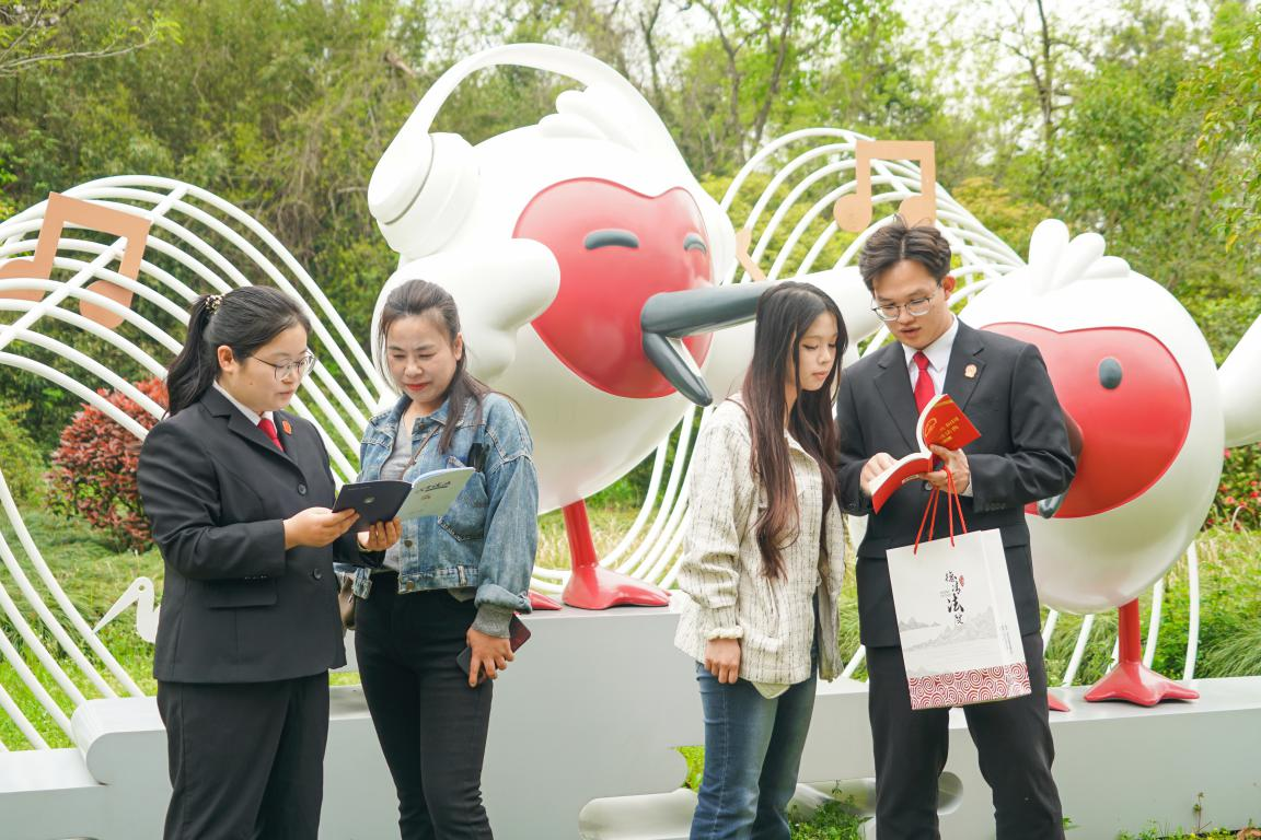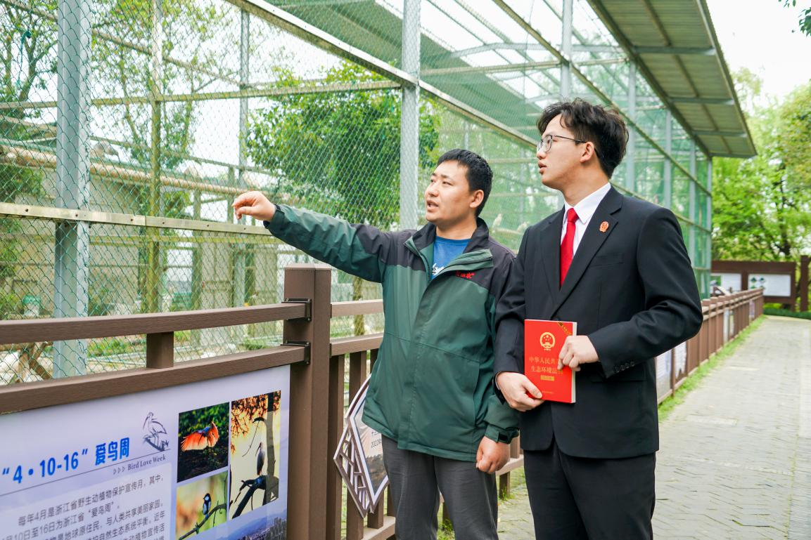 浙江省“愛鳥周”來臨之際,浙江省德清縣人民法院干警走進(jìn)下渚湖濕地公園開展生態(tài)環(huán)境法典普法宣傳活動(dòng)?;顒?dòng)中,干警來到朱鹮保護(hù)基地,向工作人員了解國家一級(jí)保護(hù)動(dòng)物朱鹮的棲息地與繁育情況。同時(shí),圍繞生態(tài)環(huán)境法典中鳥類保護(hù)的相關(guān)規(guī)定,向游客解讀法律條文,講解鳥類保護(hù)法律知識(shí),旨在提升公眾生態(tài)法治意識(shí),護(hù)航鳥類家園。