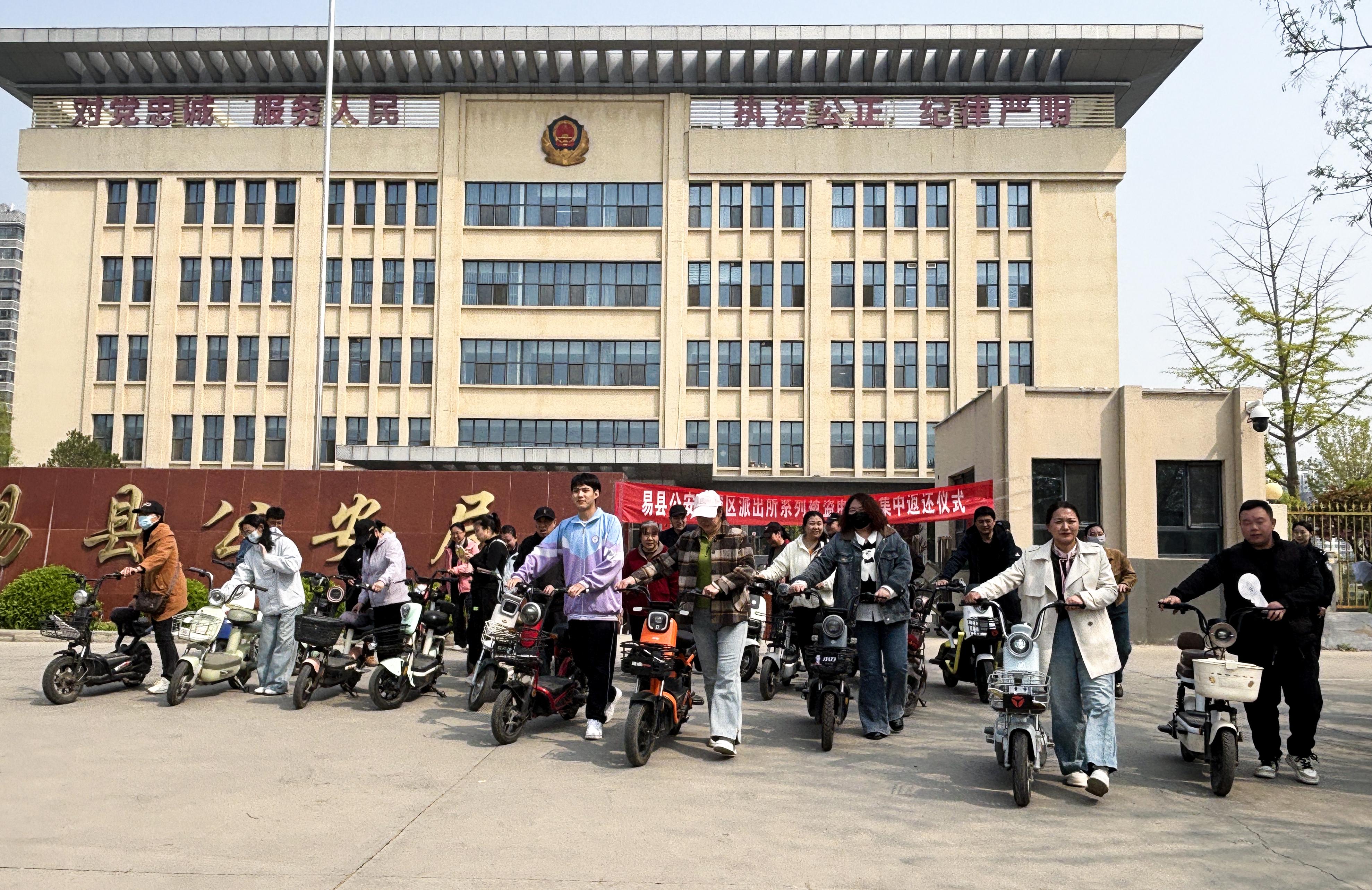4月15日,河北省保定市易縣公安局舉行涉案電動(dòng)車集中返還活動(dòng),將24輛追回的被盜電動(dòng)車逐一返還失主。活動(dòng)現(xiàn)場(chǎng),24名車主領(lǐng)回了自己失而復(fù)得的電動(dòng)車,紛紛對(duì)民警高效辦案、為民挽損表示感謝。