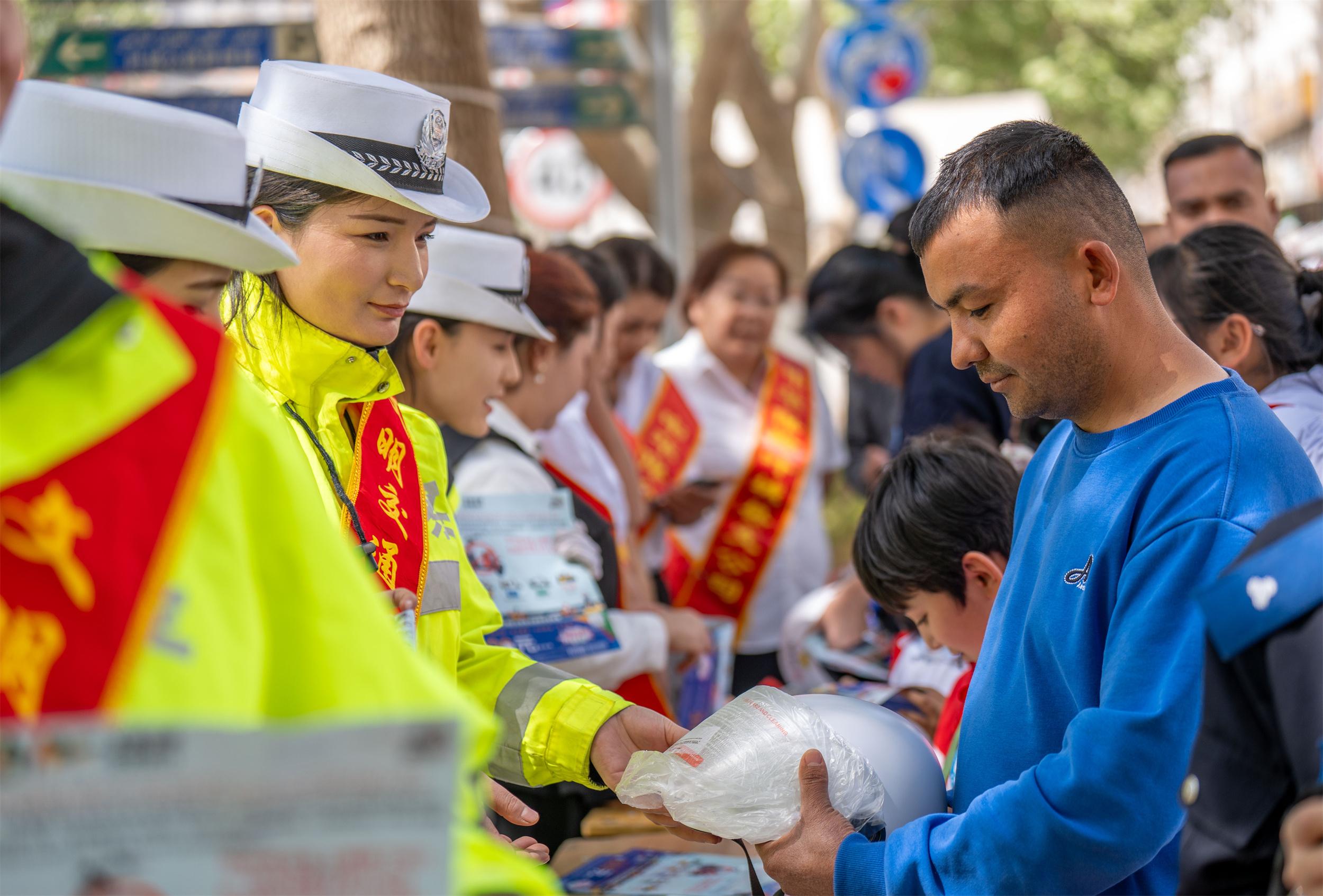 4月16日,新疆維吾爾自治區(qū)葉城縣公安局交通管理大隊(duì)開展“一盔一帶 安全守護(hù)”公益宣傳活動(dòng)。民輔警通過懸掛宣傳橫幅、擺放警示展板、發(fā)放安全手冊、現(xiàn)場講解演示等多種形式,向群眾普及交通安全知識(shí),為群眾出行安全筑牢堅(jiān)實(shí)“防護(hù)盾”。