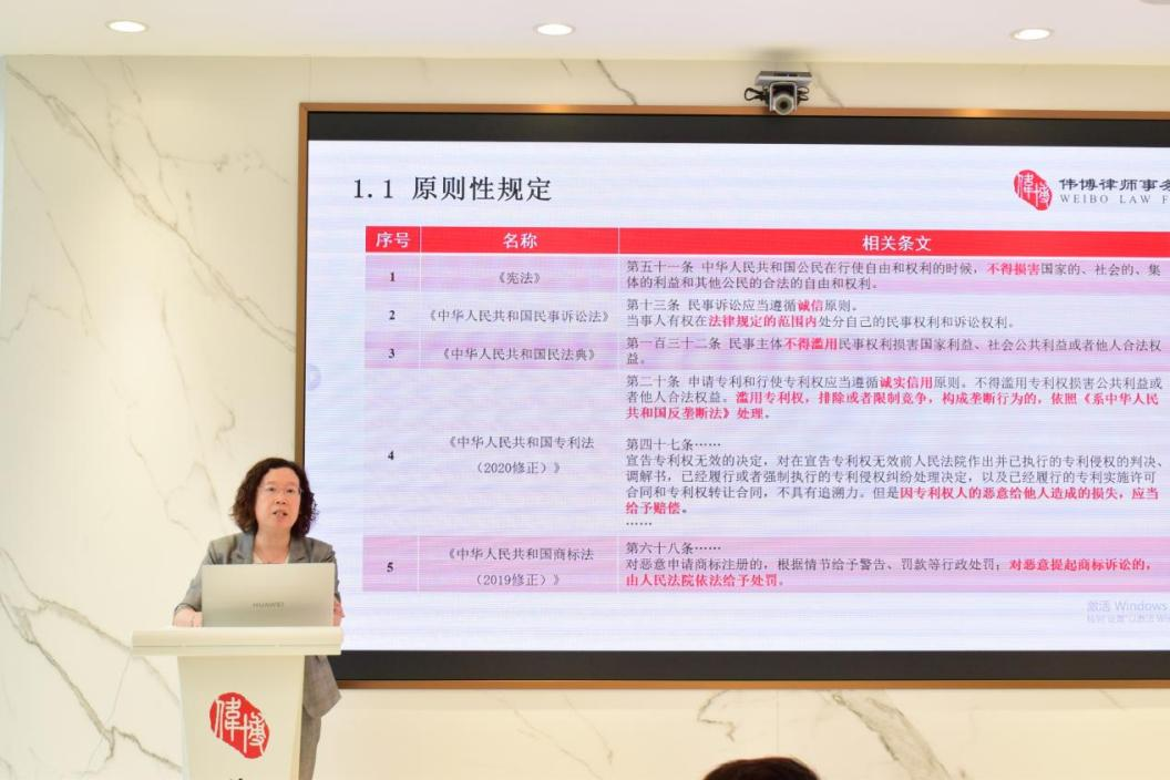 2025年9月5日,由北京市偉博律師事務(wù)所(以下簡(jiǎn)稱“偉博律所”)主辦的“知識(shí)產(chǎn)權(quán)惡意訴訟疑難問題與實(shí)務(wù)研究”講座在北京CBD陽(yáng)光金融中心偉博律所北京總部舉辦。偉博律所高級(jí)合伙人范秀霞律師擔(dān)任主講人,從法律規(guī)定、認(rèn)定標(biāo)準(zhǔn)、司法實(shí)踐、國(guó)際比較及實(shí)務(wù)建議五個(gè)方面系統(tǒng)梳理了惡意訴訟的現(xiàn)狀與挑戰(zhàn)。