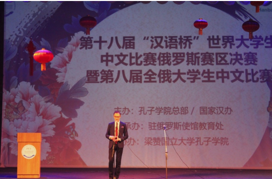 4月26日,第十八屆“漢語橋”世界大學生中文比賽俄羅斯賽區(qū)決賽暨第八屆全俄大學生中文比賽在俄羅斯梁贊市落下帷幕。來自俄羅斯莫斯科、圣彼得堡、喀山、葉卡捷琳堡、伊爾庫茨克、哈巴羅夫斯克、符拉迪沃斯托克等七個賽區(qū)的35名選手,圍繞“天下一家”的比賽主題進行了激烈角逐。中華人民共和國駐俄羅斯聯(lián)邦大使館教育處、駐葉卡捷琳堡總領事館、駐哈巴羅夫斯克總領事館代表,梁贊州教育與青年政策廳、梁贊市政府、梁贊國立大學校方代表,以及來自全俄各地的中俄大學生代表等400余人觀摩了比賽。