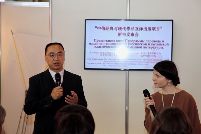 俄羅斯翻譯學院院長列茲尼琴科,中國駐俄羅斯大使館二秘王睿以及來自俄羅斯出版與大眾傳媒署、俄羅斯科學院、莫斯科大學、俄羅斯外國文學圖書館、歐亞著作權人組織聯(lián)合會、俄羅斯兒童基金會、俄羅斯兒童文學出版社、俄羅斯東方文學出版社、俄羅斯維切出版社、俄羅斯時代出版社、白俄羅斯人民文學出版社、白俄羅斯大百科全書出版社的官員、作家、漢學家和出版人代表、中國新聞出版代表團全體成員以及兩國媒體記者近百人參加了新書發(fā)布會。