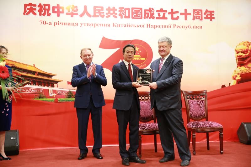 為表彰和鼓勵長期以來為中烏關(guān)系發(fā)展作出重要貢獻的烏各界友好人士,杜偉在招待會上代表駐烏使館向烏克蘭前總統(tǒng)庫奇馬、波羅申科等頒發(fā)了“中國—烏克蘭友誼獎?wù)隆?。隨后,庫奇馬、波羅申科分別接受央視采訪,向中華人民共和國成立70周年華誕致以誠摯祝賀,盛贊70年來中國經(jīng)濟社會發(fā)展取得的巨大成就。庫奇馬說,“中國70年來走過的道路值得我們致以最崇高的敬意,中國的經(jīng)濟、科技發(fā)展成就舉世矚目,烏克蘭應(yīng)不斷向中國學(xué)習(xí)。”波羅申科則愉快地回憶起同習(xí)近平主席在達沃斯的會晤,稱那次交流為雙邊關(guān)系的發(fā)展提供了強勁動力,表示對烏中關(guān)系的前景充滿信心。