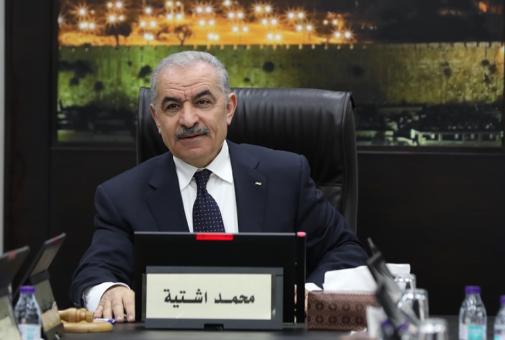 26日,巴勒斯坦總理阿什提耶在約旦河西岸城市拉姆安拉舉行的政府工作會議發(fā)表講話,宣布巴勒斯坦政府辭職。新華社發(fā)(艾曼·諾巴尼攝)