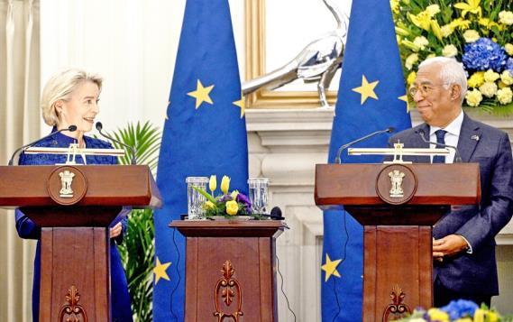 自歐盟委員會(huì)1月21日正式提出《數(shù)字網(wǎng)絡(luò)法案》立法提案以來,歐盟領(lǐng)導(dǎo)人在多個(gè)場合力推該法案。圖為當(dāng)?shù)貢r(shí)間1月27日,歐盟委員會(huì)主席馮德萊恩(左)與歐洲理事會(huì)主席科斯塔共同出席新聞發(fā)布會(huì)。 CFP供圖