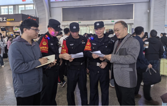 “春運(yùn)期間,我們專門組建了由5名民警、6名輔警組成的‘鐵鷹’小分隊(duì),緊盯霸座、猥褻、抽煙等影響旅客出行安全的突出治安問(wèn)題,嚴(yán)打電信網(wǎng)絡(luò)詐騙等違法犯罪,全力壓發(fā)案、打現(xiàn)行、保民安。”??跂|站派出所教導(dǎo)員呂海瑞告訴記者。