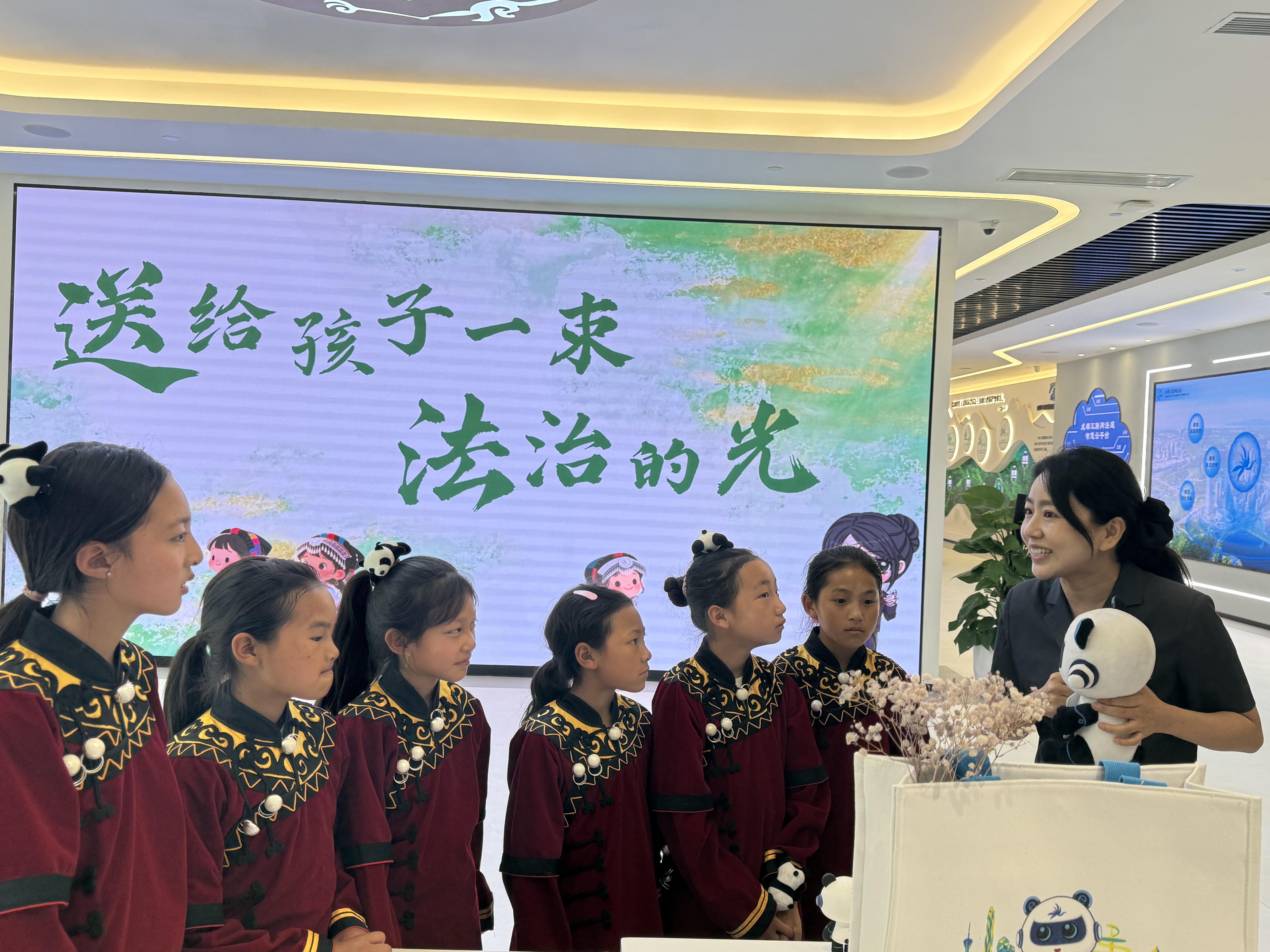 在四川大熊貓國家公園生態(tài)法庭的普法互動區(qū),妞妞們表現(xiàn)出對野生動物保護(hù)法律知識很感興趣,丁倩詳細(xì)介紹了四川境內(nèi)的珍稀野生動植物保護(hù)知識,大熊貓國家公園、攀枝花蘇鐵國家級自然保護(hù)區(qū)、臥龍自然保護(hù)區(qū)等生態(tài)環(huán)境司法保護(hù)情況等。