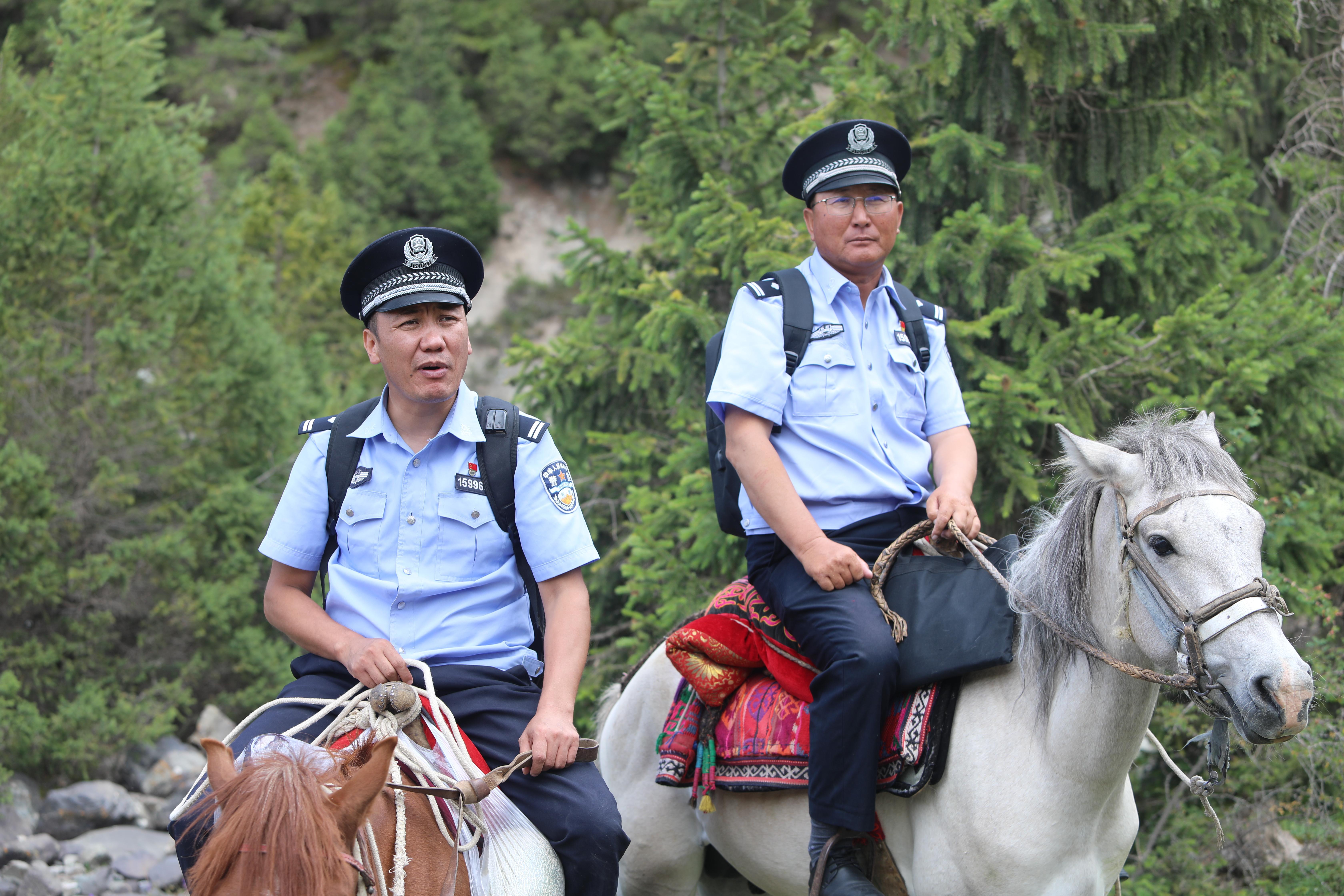 這是烏恰縣公安局波斯坦鐵列克鄉(xiāng)派出所的“馬背警務(wù)服務(wù)隊(duì)”,民警李鑫林和同事加庫(kù)普瓦力·拜克堯力正帶著辦好的證件,送往牧民家中。喬爾波村牧區(qū)面積大,部分區(qū)域車(chē)輛難以抵達(dá),馬匹成了最可靠的交通工具。