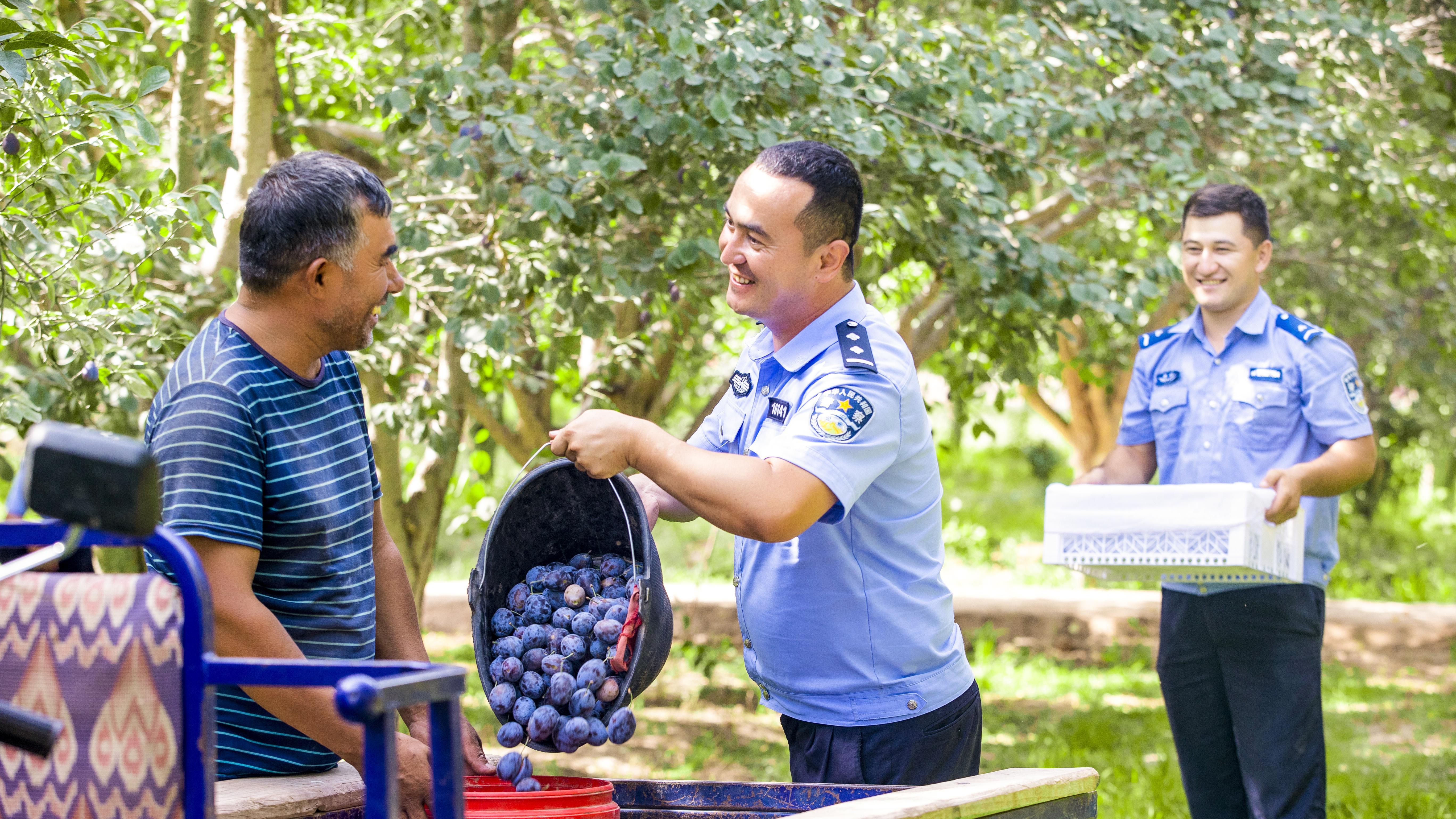8月的新疆伽師縣,當紫紅色的新梅壓彎枝頭,伽師縣公安局的“新梅警務”準時“上線”了。