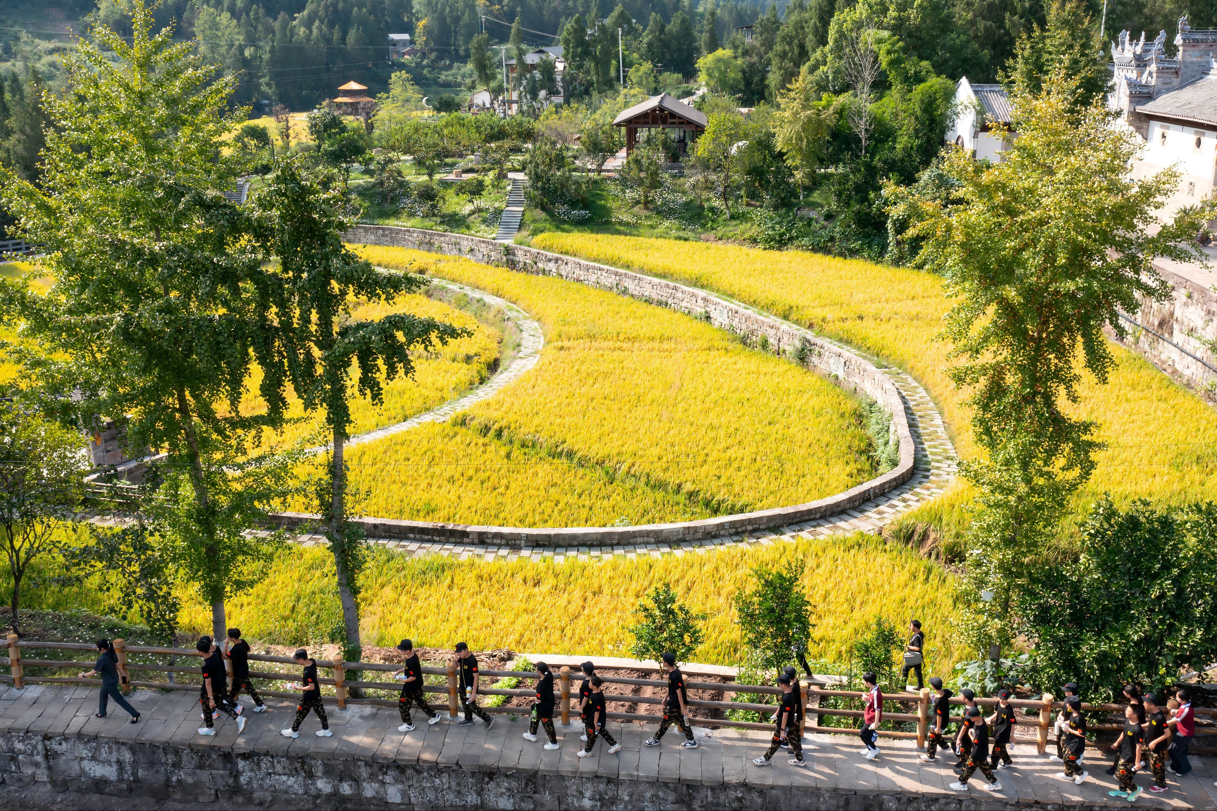 9月4日,重慶市云陽縣人民法院組織重慶市中山外國語學校百余名高一新生,在軍訓實踐日走進黎明古村。學生們深入田間地頭,體驗收割稻谷;走進“稻田里的巡回審判”研學基地,探尋法治印記,聆聽法官帶來的“開學第一課”。活動以“勞動+普法”的新穎形式,將法治種子如稻穗般扎根學生心田。