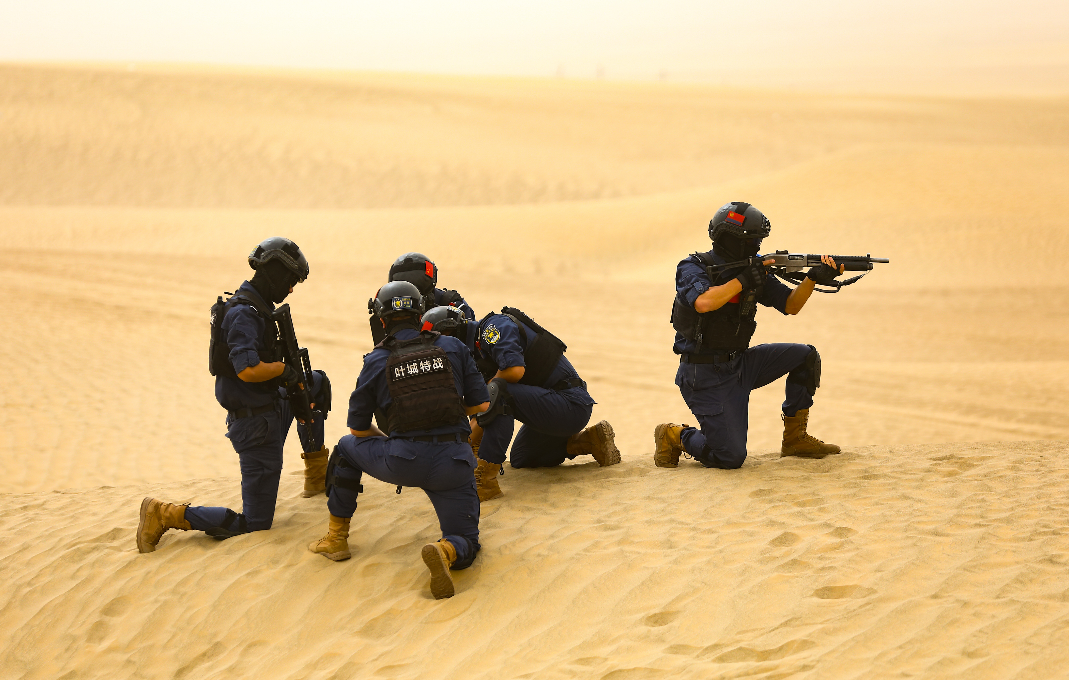 9月5日,新疆維吾爾自治區(qū)葉城縣公安局特警大隊在沙漠戈壁開展秋季實戰(zhàn)化訓練,進行沙漠定向越野、極限耐力行軍、沙漠搜捕、武器精準射擊等科目,應對風沙、高溫、逆光等復雜環(huán)境考驗,所有訓練科目高效完成,不僅錘煉了特警隊員的體能與專業(yè)技能,更凝聚協(xié)作力量,為守護邊疆穩(wěn)定筑牢了根基。