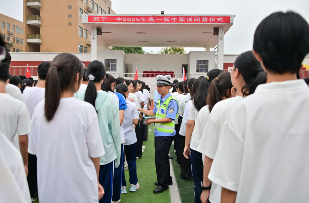 9月7日,江西省武寧縣第一中學(xué)舉行高一新生秋季軍訓(xùn)結(jié)營儀式。武寧縣公安局交通管理大隊(duì)組織民警走進(jìn)校園,通過集中宣傳、面對(duì)面交流、發(fā)放宣傳單等方式,提升學(xué)生們的交通安全意識(shí)和自我保護(hù)能力。