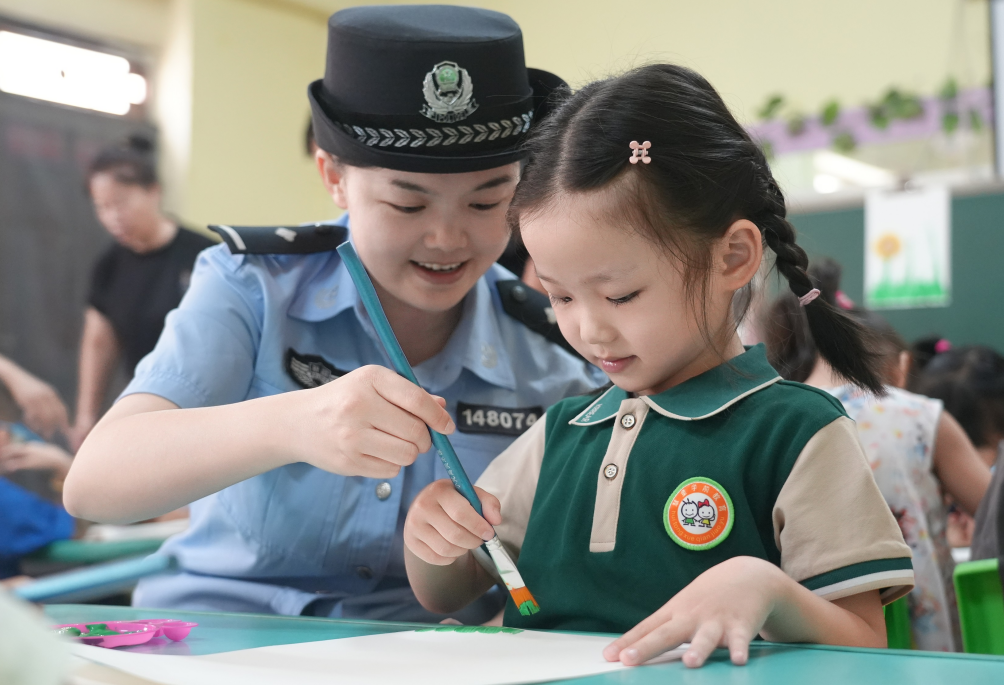 圖為民警在幼兒園開(kāi)展“尊師重教 與法同行”主題活動(dòng)。