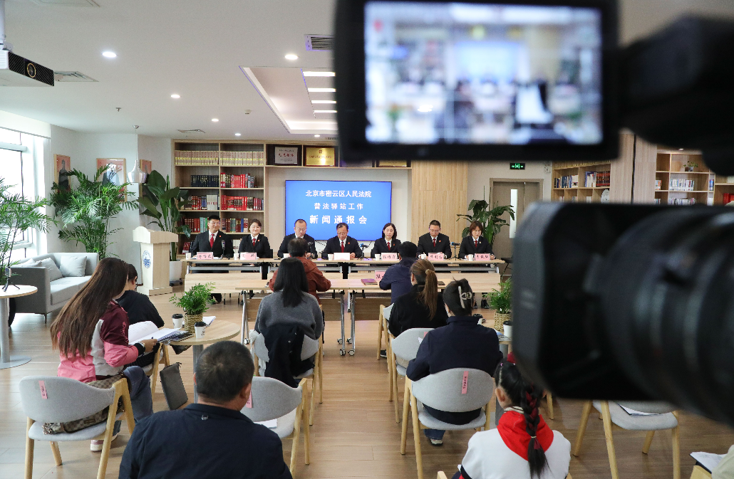 圖為密云區(qū)法院召開新聞發(fā)布會(huì),向社會(huì)通報(bào)普法驛站建設(shè)情況。