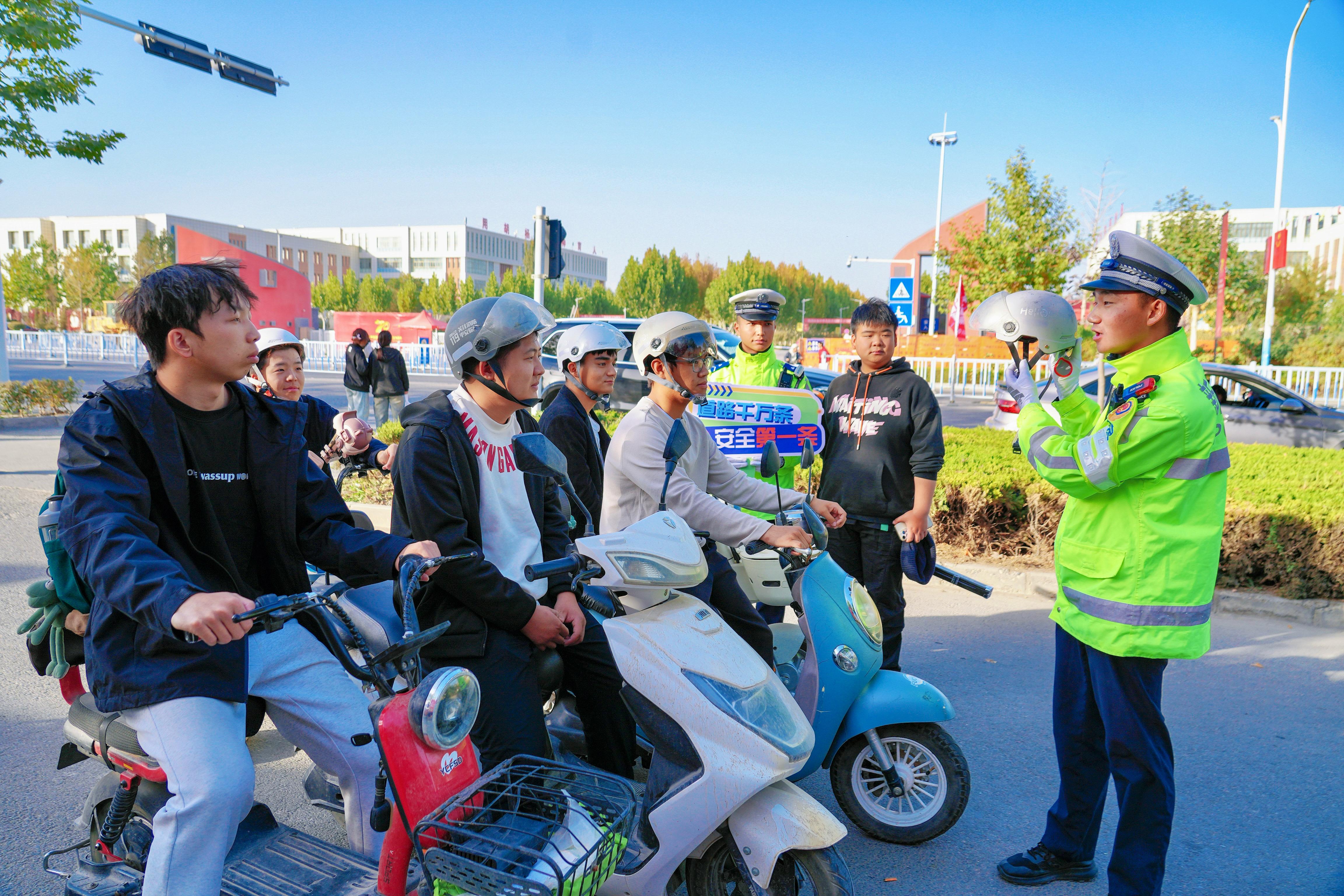 圖為10月16日,溫宿縣公安局交通管理大隊(duì)民警向新疆理工學(xué)院學(xué)生普及文明騎車相關(guān)知識(shí),引導(dǎo)學(xué)生切勿逆向行駛。