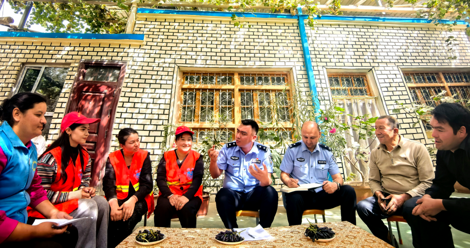 “石榴大媽”志愿服務(wù)隊由全國“楓橋式公安派出所”、葉城縣公安局伯西熱克派出所組建,900余名志愿者奔走于全鎮(zhèn)19個村,走出一條在“家門口”排憂解難的新路子。