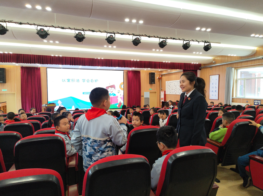 圖為“流動(dòng)法律超市”開進(jìn)烏達(dá)區(qū)團(tuán)結(jié)路小學(xué),向?qū)W生們開展法治宣傳活動(dòng)。
