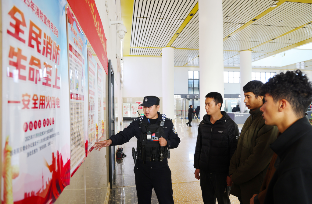 11月8日,烏魯木齊鐵路公安局喀什公安處聯(lián)合內(nèi)部單位,走進轄區(qū)、線路、候車室等地點,開展“全民消防 生命至上 安全用火用電”安全宣講活動。